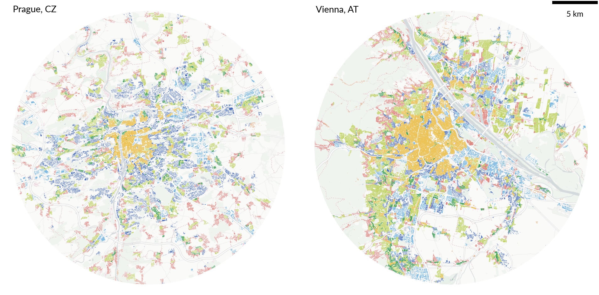 The images above show just one level of the taxonomy in two cities, Prague and Vienna. However, the classification currently covers 10 countries (Austria, Belgium, Czechia, France, Germany, Lithuania, the Netherlands, Poland, Slovakia, and Spain), with more to come in 2026.