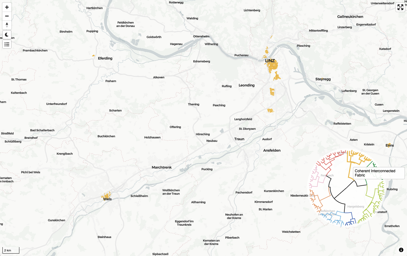 In addition to the tree diagram and the popup, the names of individual branches shown on the map are available in the collapsible legend in the left control centre.